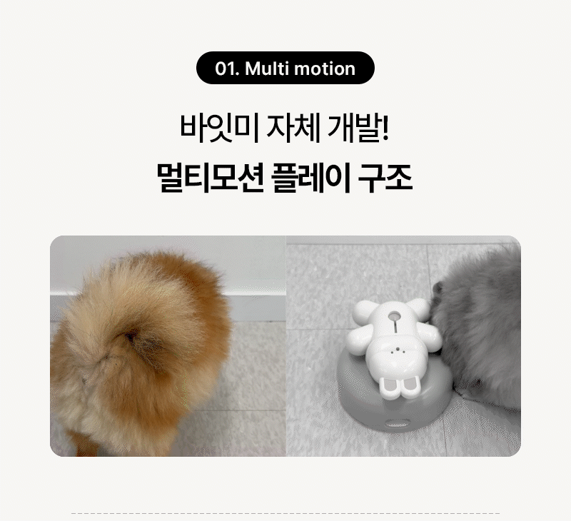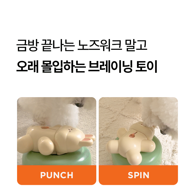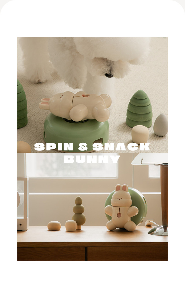 **360°旋轉**:兔子角色在加重的底座上自由旋轉,對寵物的每一次推和爪子都做出反應。