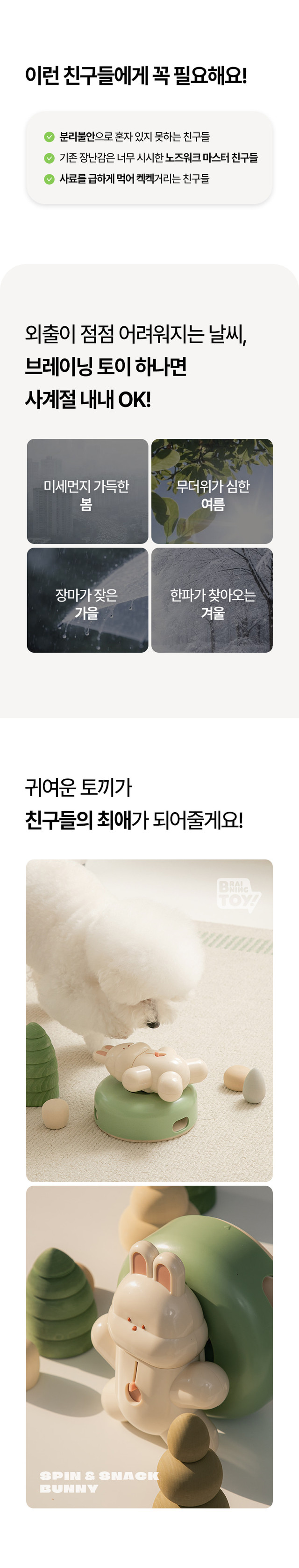 看著你的小狗興奮地搖尾巴! Braining Rabbit不僅僅是一個玩具;它是一個旋轉的、分配食物的拼圖,可以吸引你的狗的思想並獎勵它們的好奇心。 只需填滿兔子,把它放在底座上,讓解決問題的遊戲時間開始!